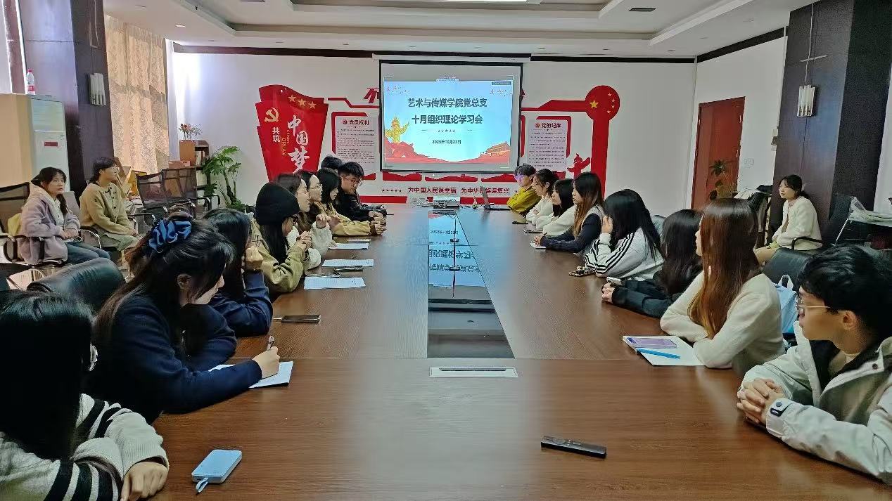 为持续推动习近平新时代中国特色社会主义思想入脑入心,切实把党的创新理论转化为提升党组织战斗力的生动实践,2025 年 10 月 23日,艺术与传媒学院党总支在明德楼 S513 会议室召开十月基层党组织理论学习会,艺术与传媒学院师生党员参会学习。​