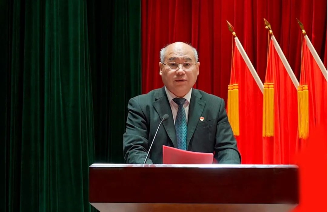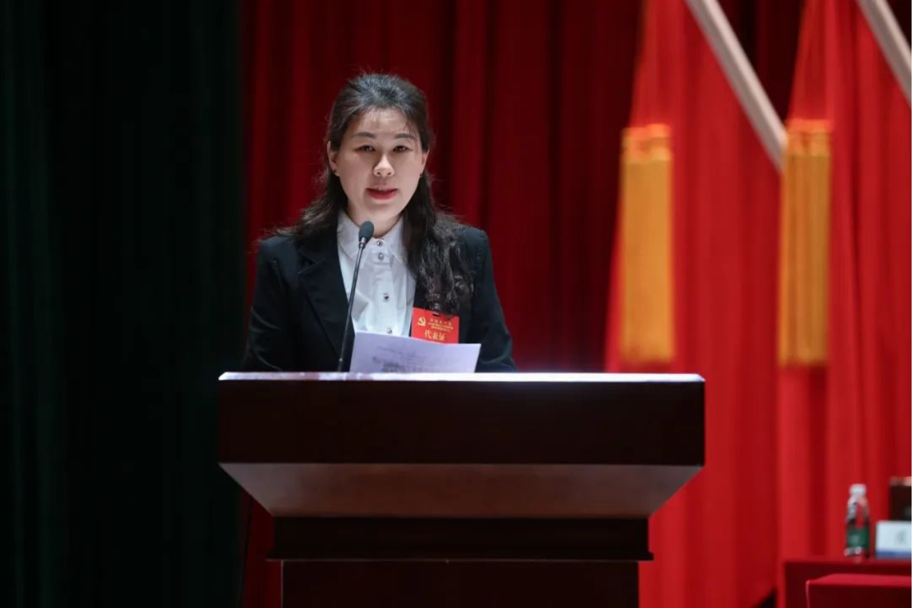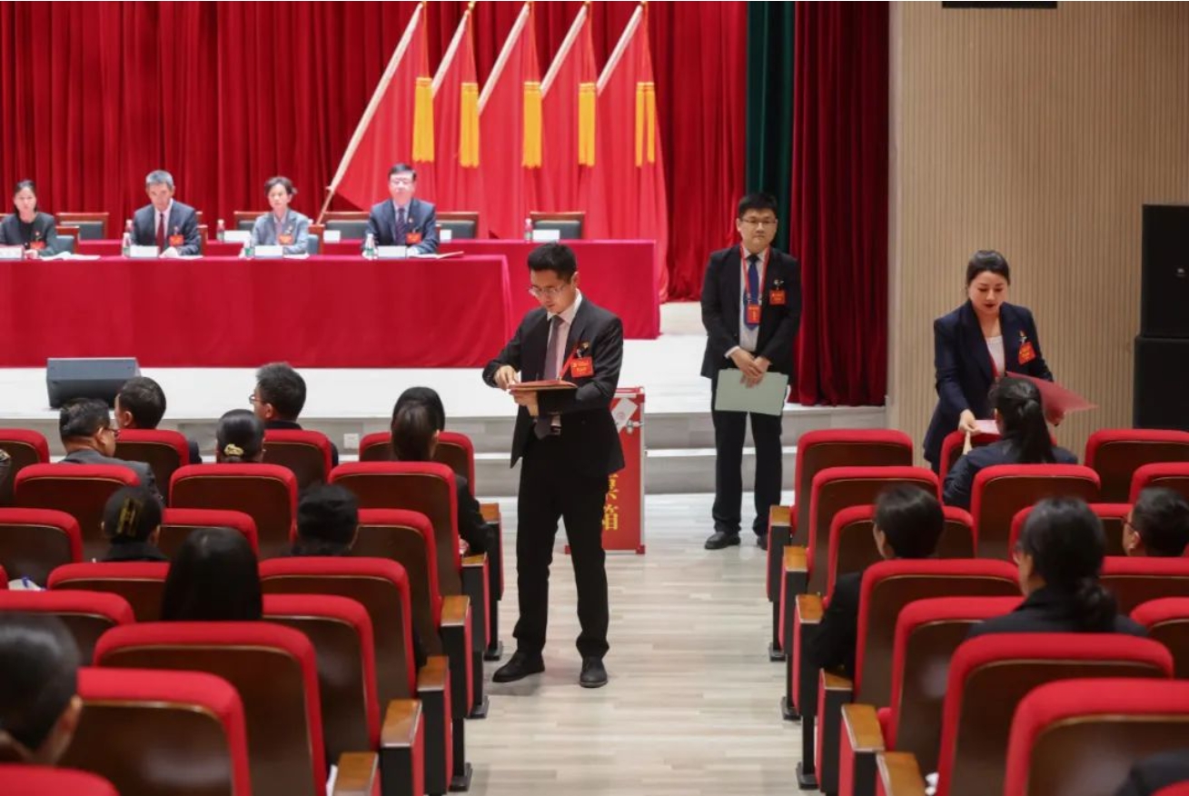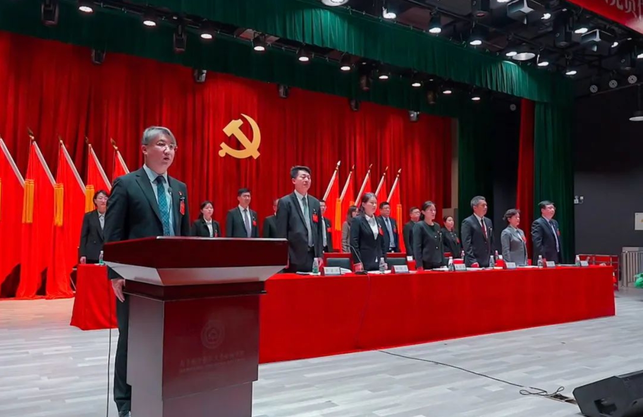 大会会场气氛庄严热烈,主席台正中悬挂的中国共产党党徽熠熠生辉,10面红旗鲜艳胜火,分列两侧。会场上,“举旗定向,蓄势赋能,奋力谱写学校高质量发展新篇章”的标语庄重醒目。