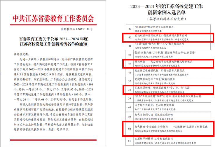 近日,在省委教育工委公布的2023—2024年度江苏高校党建工作创新案例名单中,我校推荐的4项案例全部入选,其中获评二等次案例2项、三等次案例2项,实现机制创新、活动创新两个类别全覆盖。