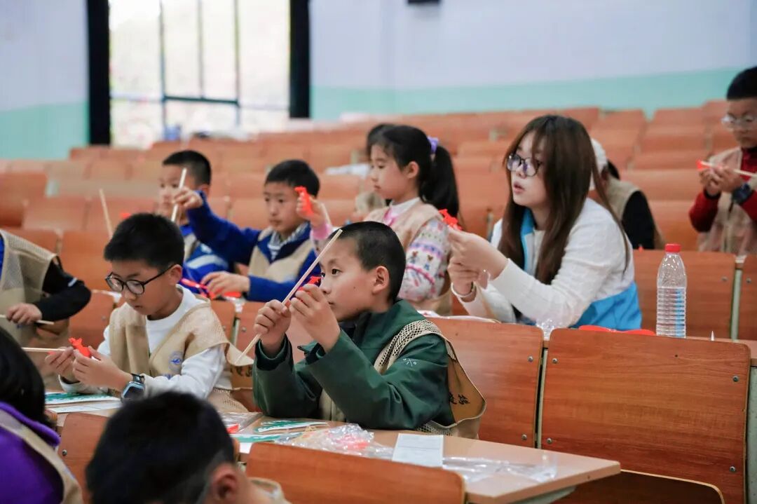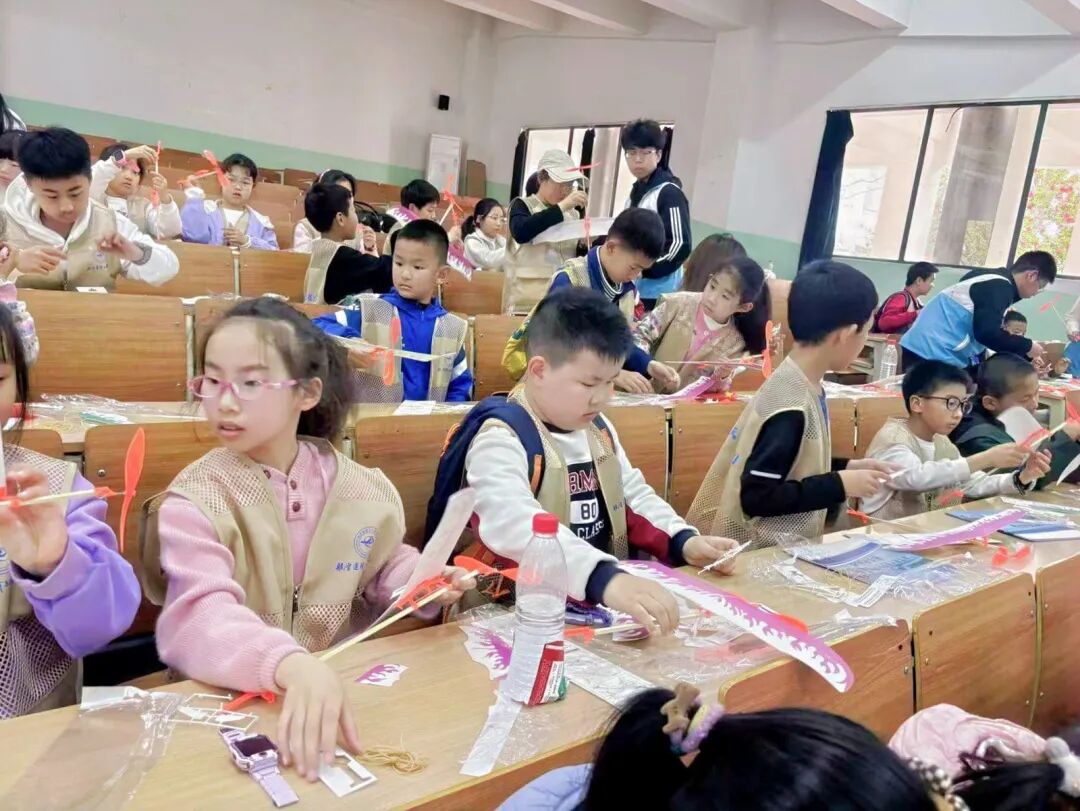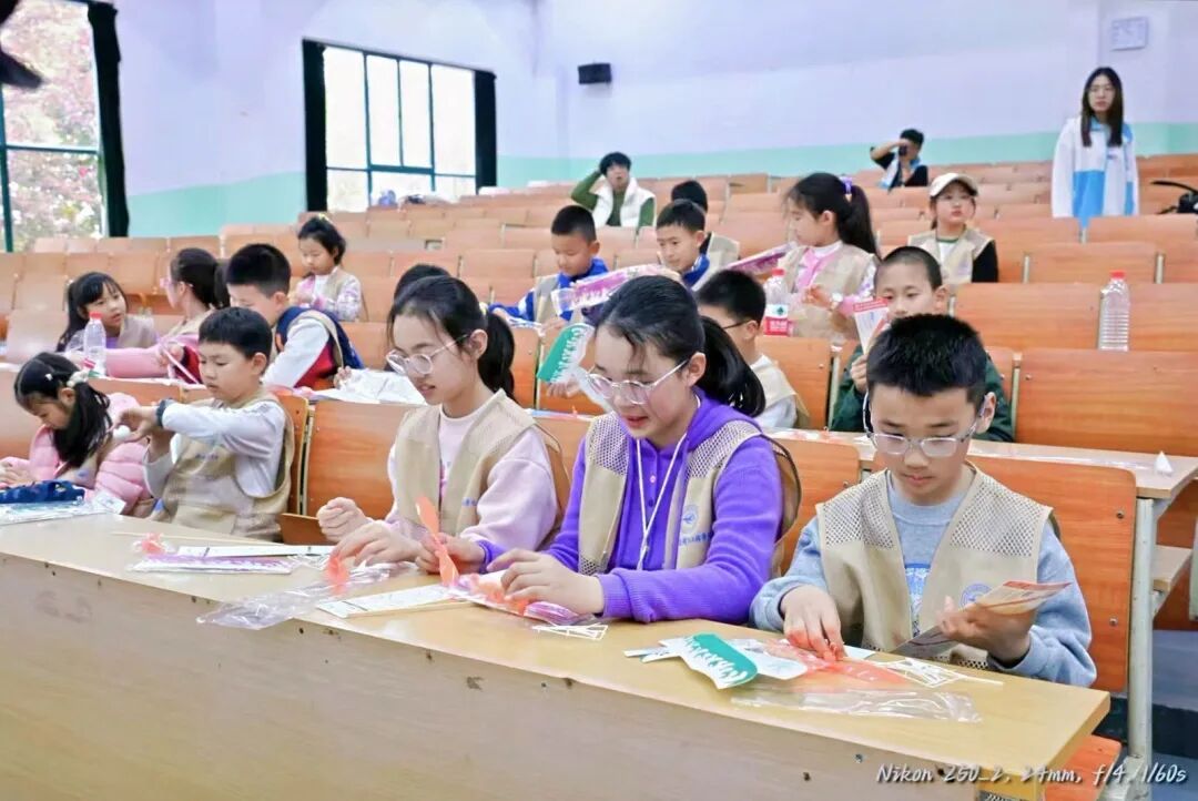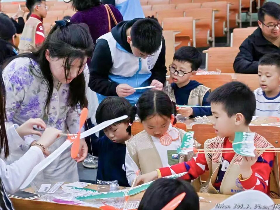在老师们指导下,孩子们小心翼翼地拼插机翼、固定机身。不一会儿,一架架小飞机在他们手中诞生,成就感写满笑脸。