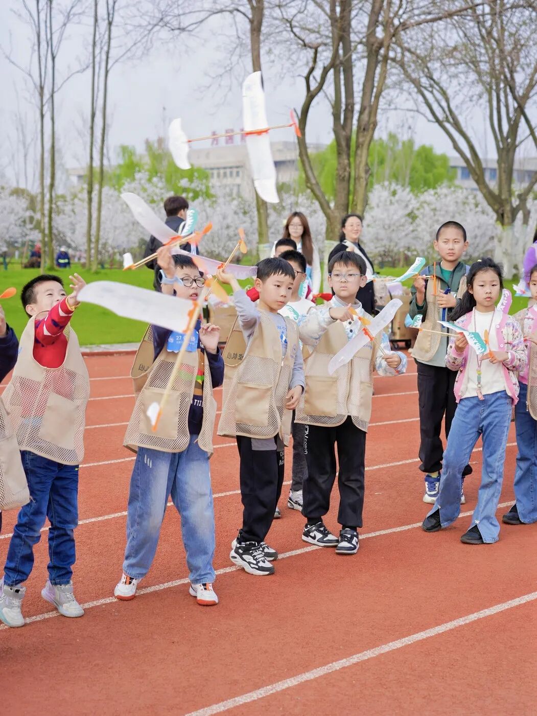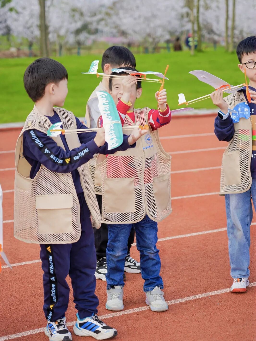 大家带着亲手制作的飞机模型奔向南区操场。随着一声“放飞”,五彩小飞机冲向蓝天,孩子们的梦想也乘着春风,飞向更高更远的地方。